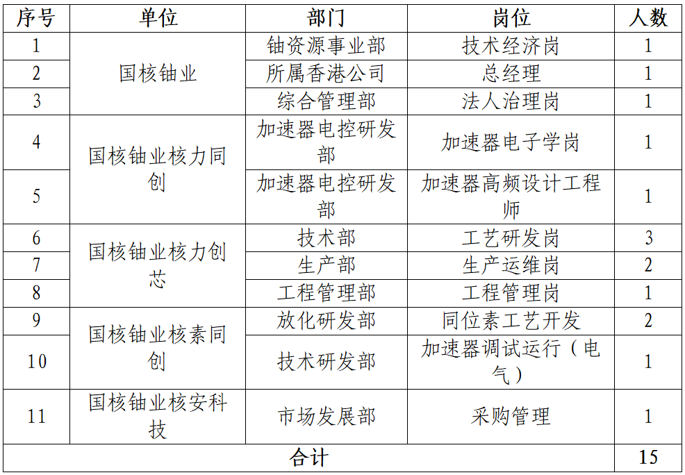根据国核铀业经营发展需要,国核铀业本部及部分所属企业面向米兰体育(中国区)体育官方网站集团系统内外公开选聘工作人员。具体事宜公告如下: