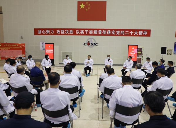 郝鹏强调,党的二十大报告对科技强军、航天强国作出重大部署。航天科工作为国防军工领域的骨干企业、国家创新体系的重要力量,要切实把思想和行动统一到党的二十大精神上来,在思想上政治上行动上同以习近平同志为核心的党中央保持高度一致。学习宣传贯彻党的二十大精神,要在全面学习、全面把握、全面落实上下功夫,读原文、悟原理,对是什么、干什么、怎么干了然于胸,有针对性地拿出落实的具体方案,制定明确的时间表、施工图,扎扎实实向前推进。要坚持科技自立自强,大力推进原创技术“策源地”建设,集聚力量进行原创性引领性科技攻关,加大关键核心技术研发力度,积极打造国家战略科技力量。要持续深化改革,完善中国特色现代企业制度,大力弘扬企业家精神,不断提高企业核心竞争力。要坚持党的领导加强党的建设,持续推进企业党建和科研生产经营深度融合,以高质量党建引领保障高质量发展,切实将党的二十大作出的战略部署转化为企业改革发展和党的建设各项工作举措,确保落地见效,为科技强军、航天强国作出新的更大贡献。