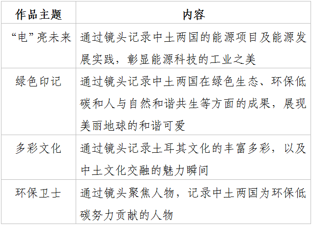 摄影大赛以“来吧!碳想家”为主题,共设置“电亮未来”“绿色印记”“多彩文化”“环保卫士”四个作品单元,旨在通过不同维度的摄影作品,诠释展现中土青年视角下的绿色价值,以及中土文化交融的魅力瞬间。