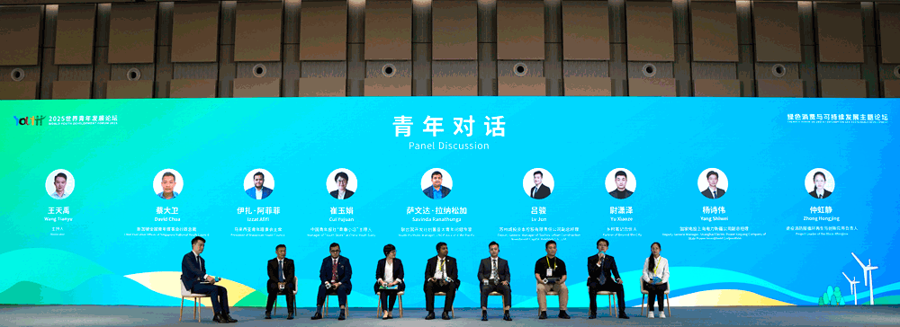 7月16日,江苏苏州,2025年世界青年发展论坛绿色消费与可持续发展主题论坛上,青年对话环节,中外青年代表就“青年消费新场景、新业态”议题展开讨论。