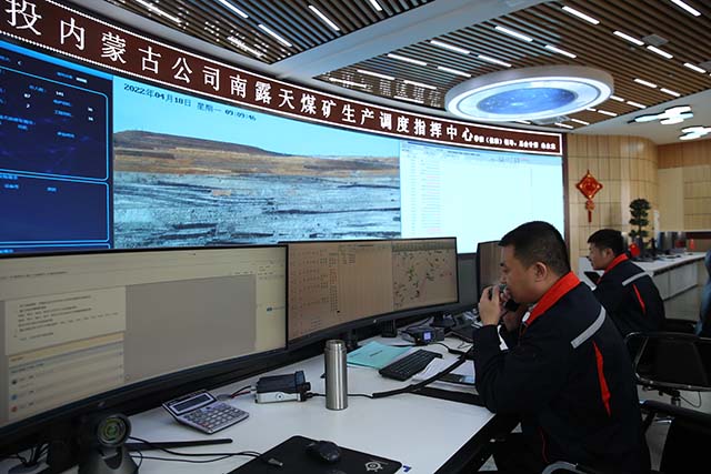 智能管理,科技兴安。在南露天矿挖掘机远程控制调度室里可以看到,工作人员通过高度还原的实体操作台与6块高清显示器,便可以对一台7公里外的WK-12C挖掘机进行远程遥控作业,前进、后退、旋转,挖料、装车,一系列动作如同有人在驾驶室内操作一般。该项目依托5G平台实现了从“一键自动”到“一键智能远程操作”的全面提速。5G+一键远程操作采煤、5G+无人运输、5G+视频分析平台……5G技术的应用已经在矿山厂区蔚然成风。该矿还全速推进综合管控平台建设进程,上线1个平台、5个中心,保证16个智能应用协同运行,使其成为具备全面感知、实时互联、分析决策、自主学习、动态预测、协同控制的综合管控平台。