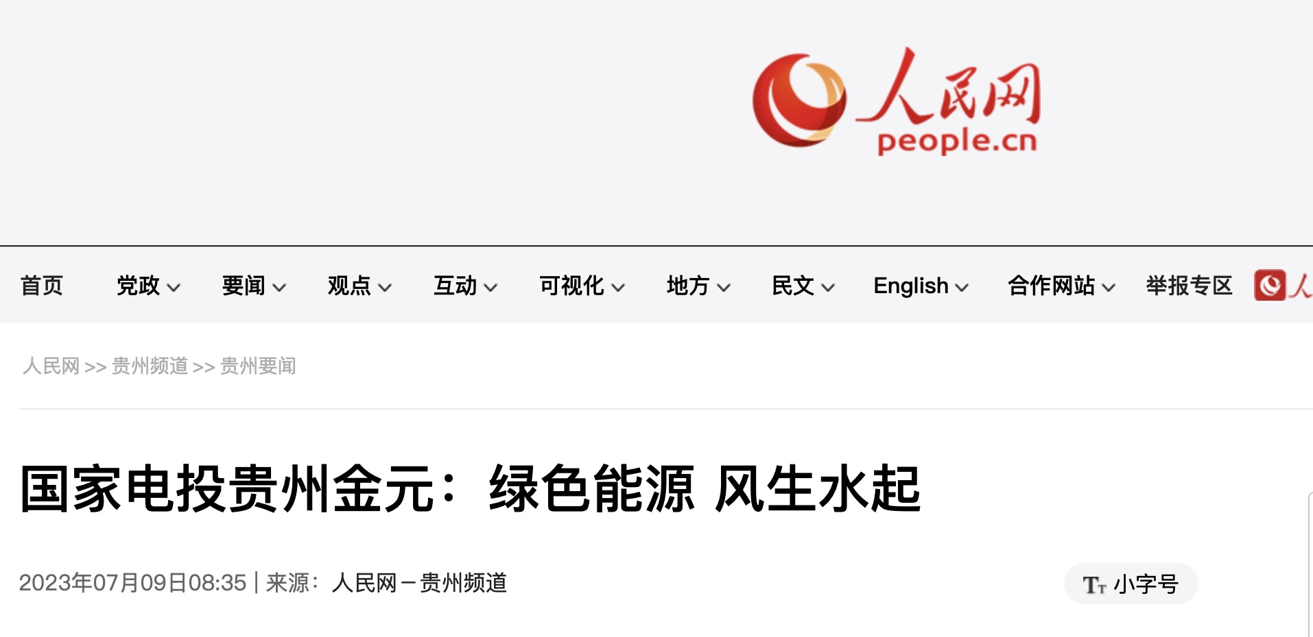 近日,人民网刊登《米兰体育(中国区)体育官方网站贵州金元:绿色能源 风生水起》一文,介绍贵州金元随着转型发展的深入推进,在新能源开发、公司调结构、“综合智慧能源”等多方面齐头并进,逐步闯出一条特色发展的现实路径。以下为报道全文: