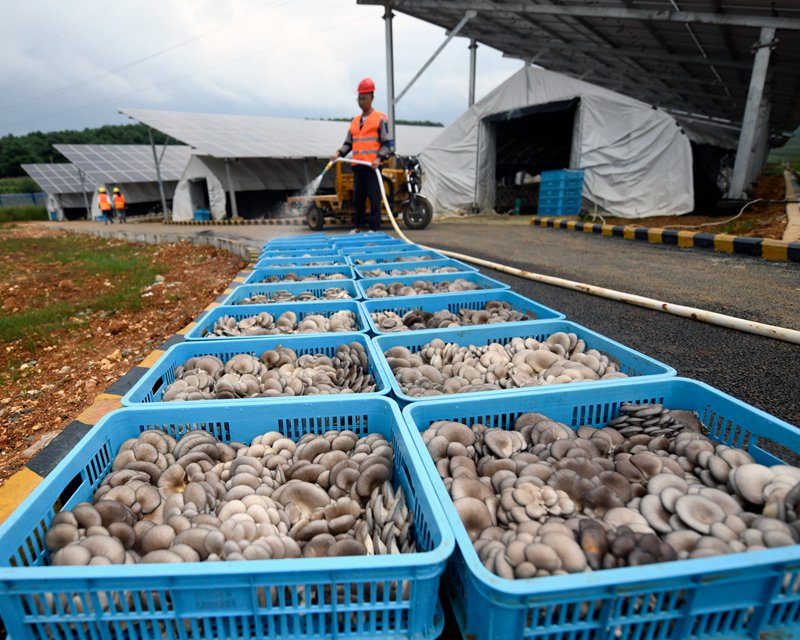 贵州金元威宁龙街设施农业光伏示范项目平菇喜获丰收。代波摄