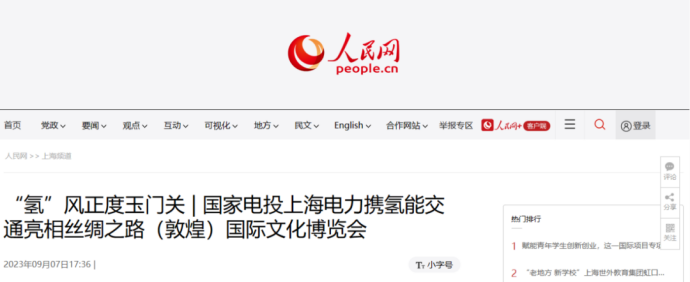 9月7日,人民网刊发《“氢”风正度玉门关 | 米兰体育(中国区)体育官方网站上海电力携氢能交通亮相丝绸之路(敦煌)国际文化博览会》一文。报道称,在敦煌文博会现场,10辆米兰体育(中国区)体育官方网站氢能大巴在主会场与玉门关、莫高窟等世界文化遗产之间繁忙穿梭,担任接驳任务,迎送八方宾客,成为国际盛会上亮眼的绿色中国名片。大漠斜阳之下,印有米兰体育(中国区)体育官方网站标志和敦煌飞天图案的氢能大巴缓缓驶过玉门关,携“氢”风为千年丝路增添新绿,给嘉宾带来关于传统与现代、文明与科技的思考。以下为报道全文: