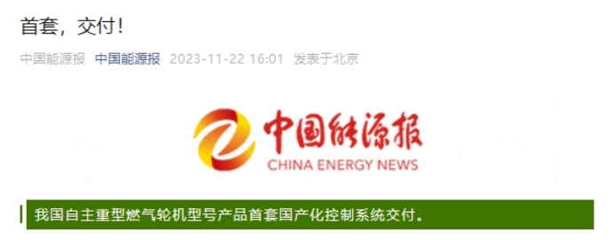 11月22日,《中国能源报》微信公众号刊发《首套,交付!》一文。报道称,中国重燃、科远智慧协同研发制造的自主重型燃气轮机型号产品首套国产化控制系统交付,智能化燃气轮机控制系统协同创新中心揭牌成立。重型燃气轮机是能源领域的核心装备,是制造强国的重要标志,关系国家安全、综合竞争力的国之重器。以下为报道全文: