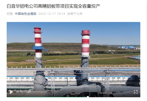 12月17日,《中国有色金属报》微信公众号刊发《白音华铝电公司高精铝板带项目实现全容量投产》一文。报道称,白音华铝电公司40万吨高精铝板带项目300台500kA系列电解槽顺利实现全容量投产运行,标志着内蒙古公司在内蒙古锡林郭勒盟白音华地区构建的“煤-电-铝”一体化发展的循环经济产业集群彻底打通。以下为报道全文: