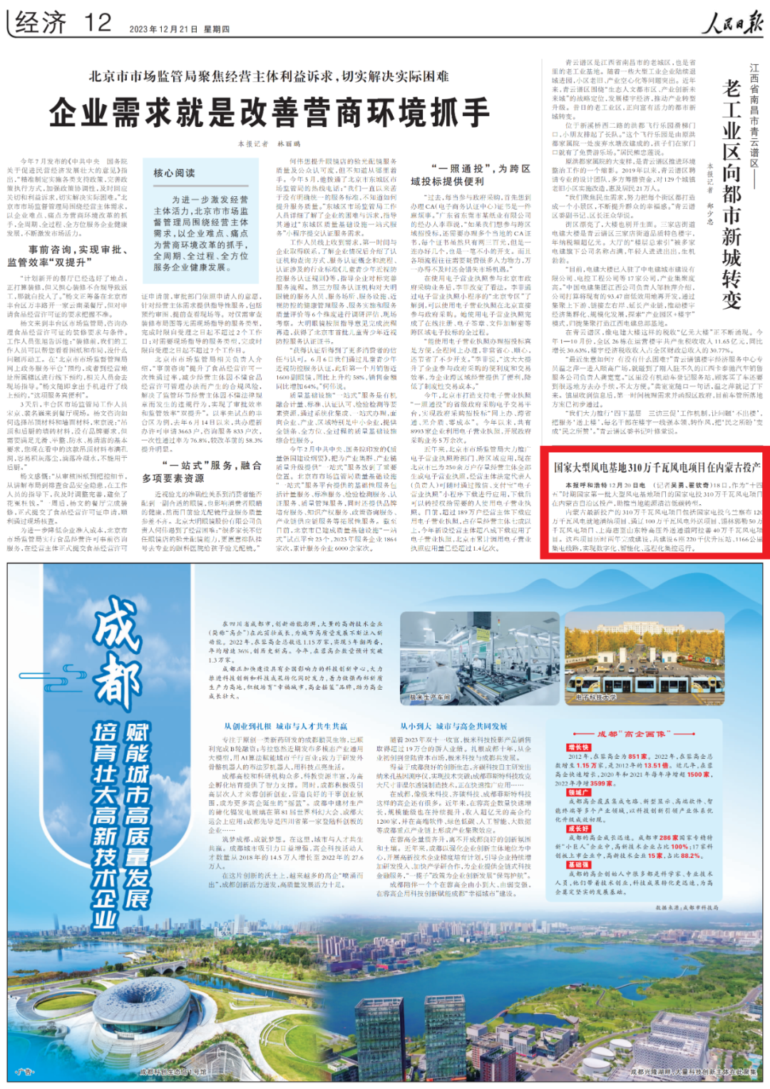 12月21日,《人民日报》第12版刊发《国家大型风电基地310万千瓦风电项目在内蒙古投产》一文。报道称,作为“十四五”时期国家第一批大型风电基地项目的米兰体育(中国区)体育官方网站310万千瓦风电项目在内蒙古自治区投产,助推当地能源清洁低碳转型。以下为报道全文: