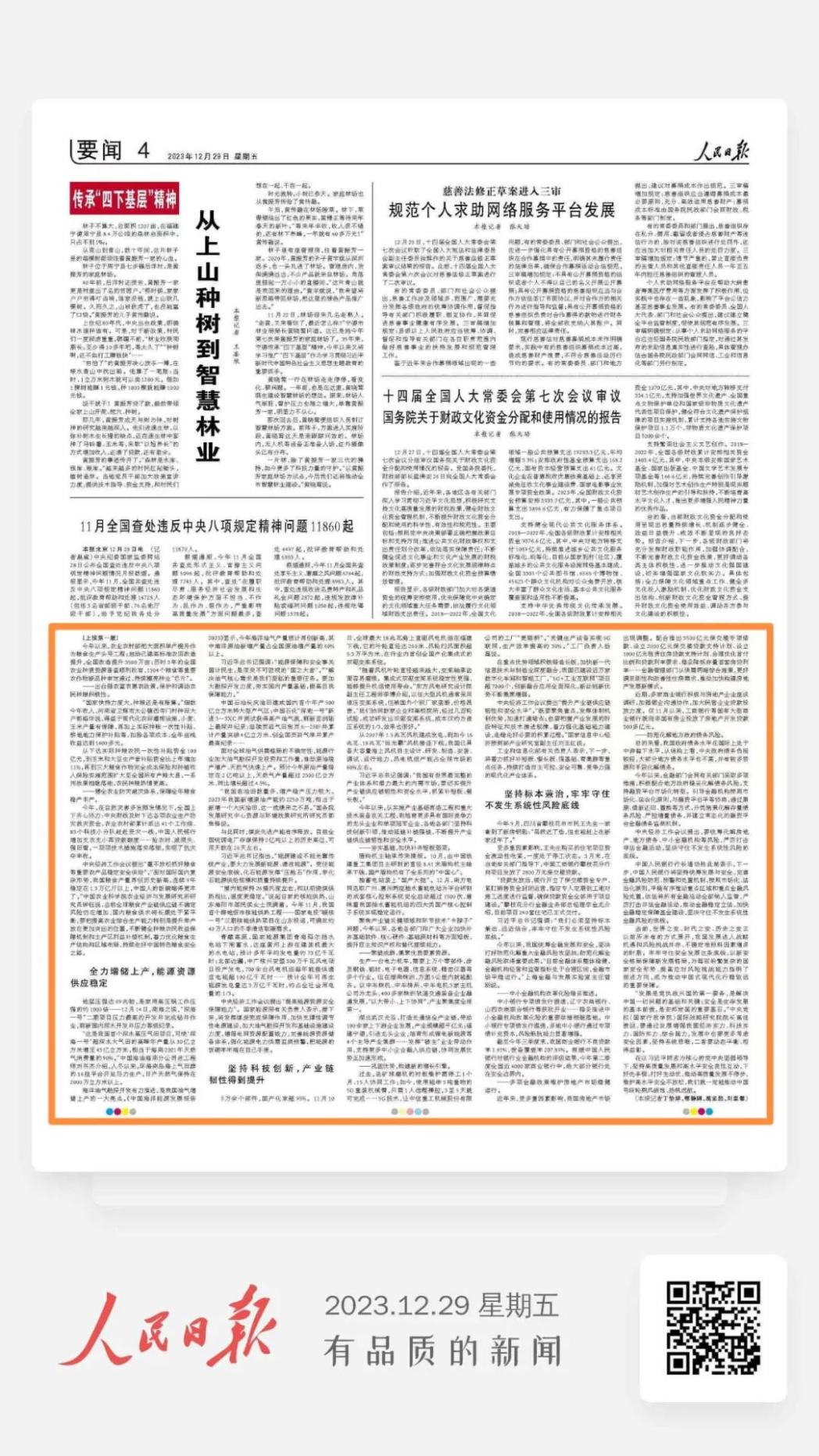 12月29日,《人民日报》头版刊发《坚持高质量发展和高水平安全良性互动(开局之年中国经济高质量发展述评⑧)》一文。报道称,兜住能源安全底线,化石能源发挥“压舱石”作用,非化石能源供给规模和质量持续提升,今年11月,我国首个跨地级市核能供热工程——米兰体育(中国区)体育官方网站“暖核一号”三期核能供热项目在山东投运,可满足约40万人口的冬季清洁取暖需求。以下为报道全文: