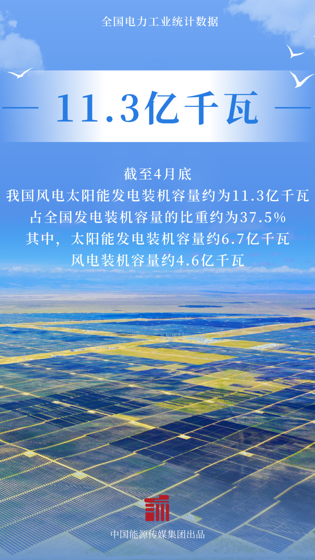 发电装机结构的转变展现能源绿色低碳发展态势,彰显我国新能源发展取得的显著成就。截至4月底,我国太阳能发电装机容量约6.7亿千瓦,风电装机容量约4.6亿千瓦。风电太阳能发电装机容量占全国发电装机容量的比重约为37.5%。我国新能源和可再生能源发电装机在2023年底突破15亿千瓦、达到15.2亿千瓦,历史性超过火电装机,成为电力装机的主体,在全国发电总装机中的比重突破50%。