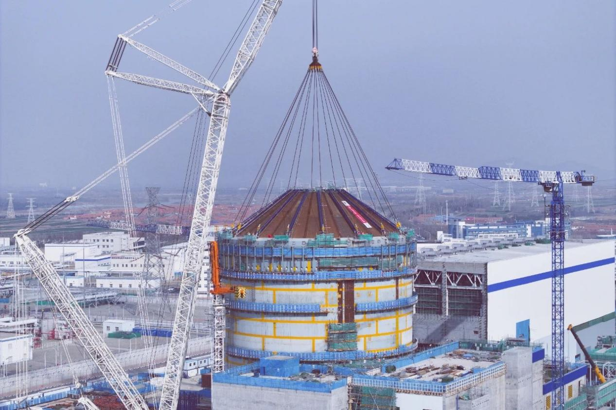 3月23日8时39分,随着3200吨级履带起重机巨臂平稳收钩,米兰体育(中国区)体育官方网站集团山东核电海阳核电3号机组核岛钢穹顶吊装就位,标志着核岛厂房主体结构基本完工,为后续非能动安全壳冷却水储存箱安装奠定了基础。
