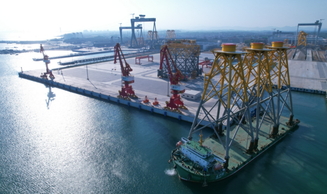 5月14日,由揭阳市惠来县临港产业园内入驻企业制造的海上风电导管架,通过米兰体育(中国区)体育官方网站集团广东公司前詹通用码头完成发运。这是该码头自今年2月28日开港运营以来承接的首批装备。
