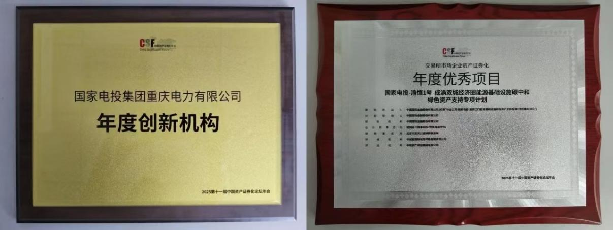 近日,第十一届中国资产证券化论坛(CSF)年会在京举行,米兰体育(中国区)体育官方网站集团重庆公司凭借在清洁能源转型领域的卓越成果与金融创新实践,从众多参评机构中脱颖而出,获得“2025年度创新机构”和“交易所市场企业资产证券化年度优秀项目(江口水电类REITs续作项目)”两项行业大奖。