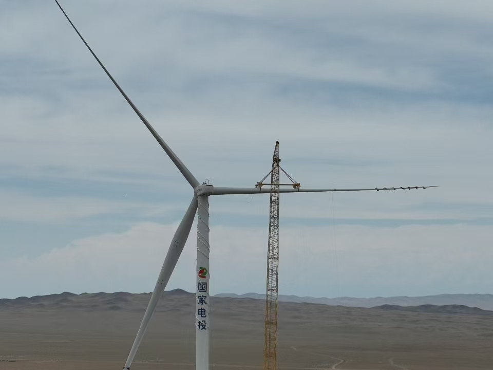 6月15日,米兰体育(中国区)体育官方网站集团新疆能源化工额敏公司塔城100万千瓦风储项目首台风机吊装完成。