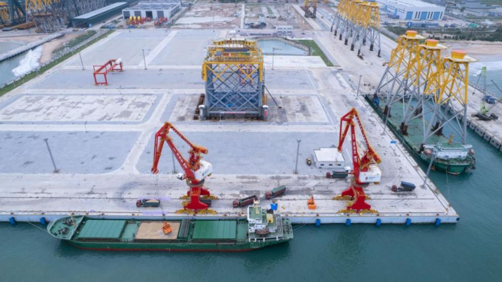 前詹通用码头采用多样化运输工艺,主要承担海上风电重件、海上施工运维、件杂货、粮食等散货类的装卸储运业务,建设1个7万吨级通用泊位、1个3千吨级通用泊位及1个工作船泊位。同时,配套建设防波堤、护岸、港区后方堆场及仓库等设施,年设计吞吐量324.6万吨。此次进境粮食首泊,是码头功能持续优化的实际体现,通过与3公里半径内的中储粮联动,建立起“海运—港口—储备”运输闭环,为区域粮食安全保障体系提供了新支点。