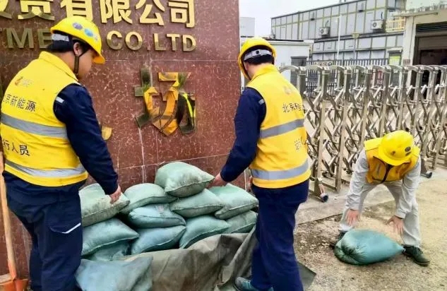 北京公司北京新能源员工在场站关键部位安放防汛沙袋,筑牢防汛安全屏障。