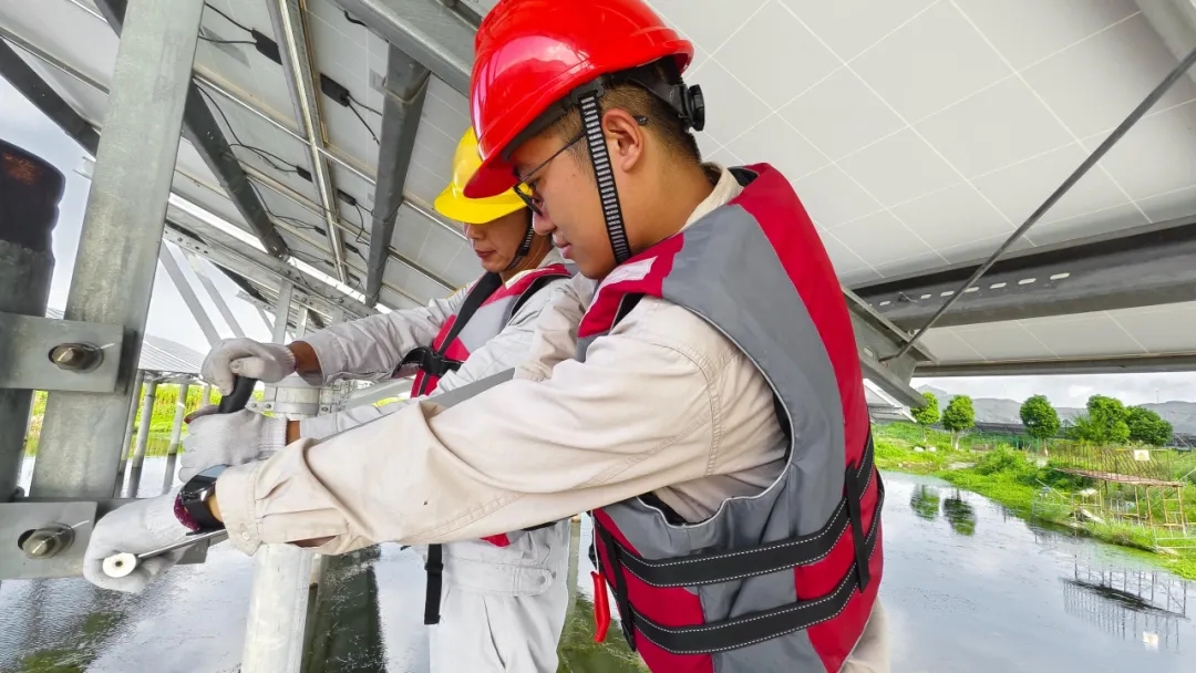 今年第8号台风“竹节草”正逐步逼近浙闽沿海。7月29日浙江省能监办启动台风防御Ⅲ级应急响应,浙江公司所属单位同步启动Ⅲ级应急响应,统筹组织浙江省内光伏及海上风电场站、福建地区光伏场站落实各项防御措施,全力保障人员安全与能源供应稳定。目前在已完成全部318座场站螺栓紧固工作的基础上,各场站开展多维度拉网式排查与状态确认工作,一方面完成现场设施抗风加固,对现场船只、堆放的光伏组件、易受风损的户外设备进行全面排查和加固处理;另一方面严查室外设备密封性能,重点检查开关室、预制仓、箱变、逆变器等设备是否存在渗水现象,杜绝因渗水导致的电气故障,通过全面落实海上、陆上各项防御举措,全力以赴做好防台风工作。