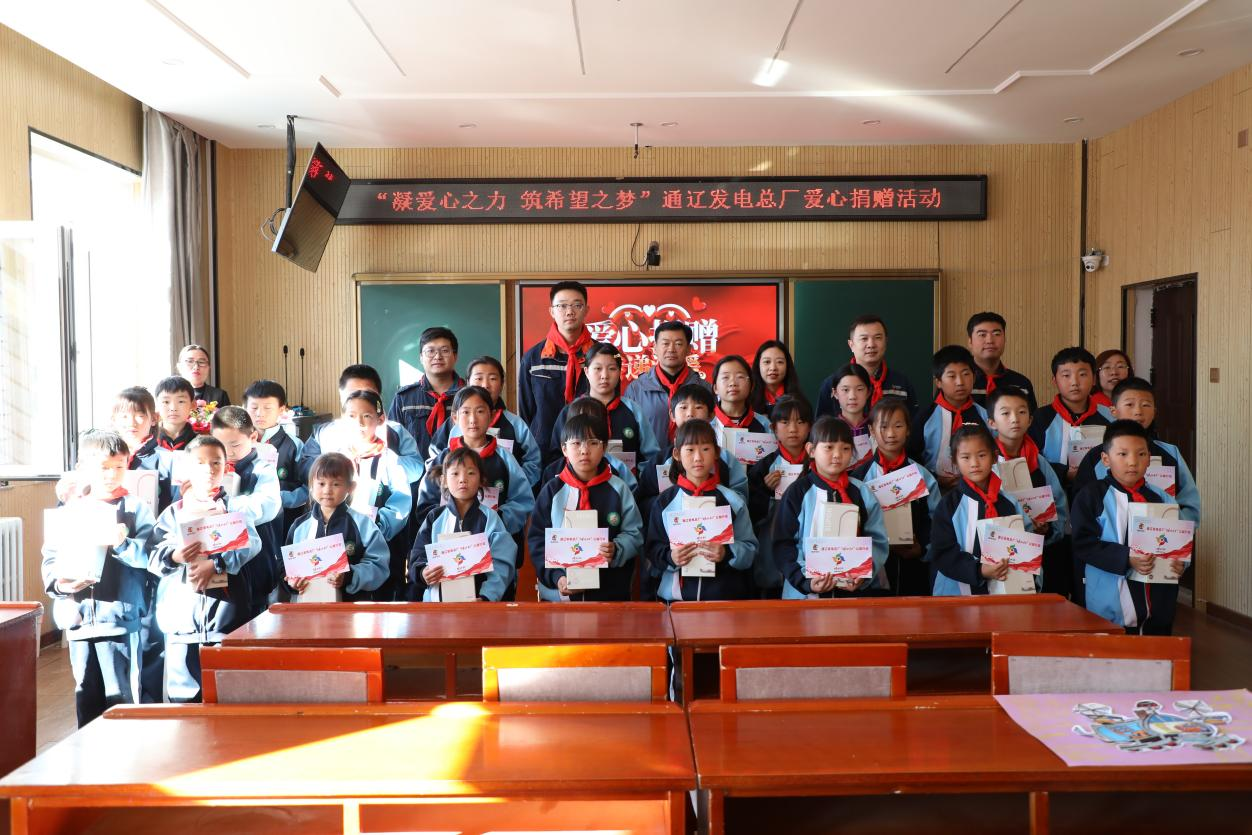 10月23日,米兰体育(中国区)体育官方网站集团内蒙古公司通辽发电总厂志愿者到通辽市科尔沁区丰田镇中心小学开展“映山红”助学活动,为28名受助学生送去秋日的温暖与希望。