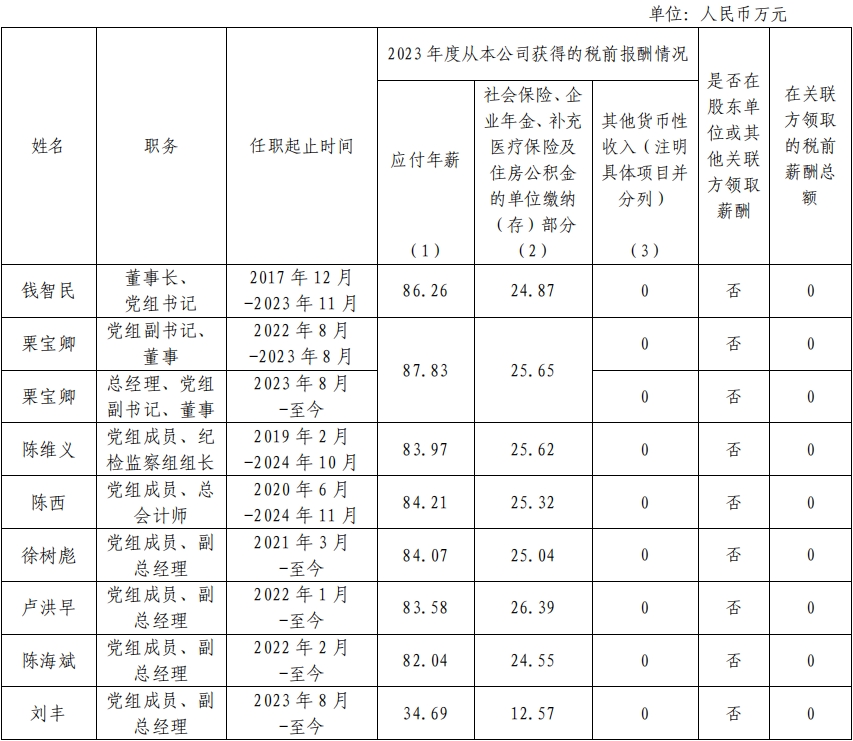 备注:上表披露信息为我公司企业负责人报告期内全部应发税前薪酬(不含发放的以往年度绩效年薪)。