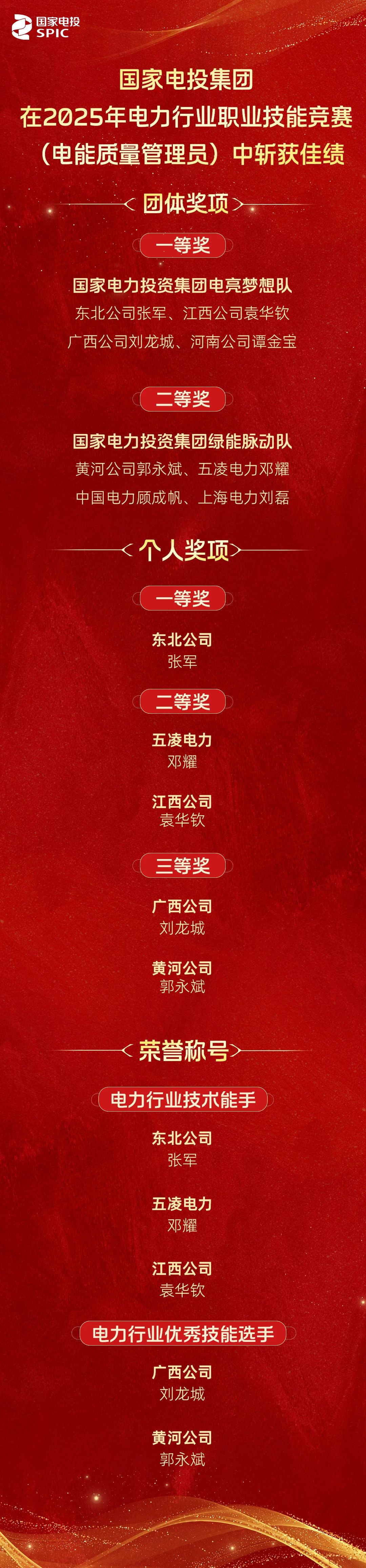 国家电力投资集团电亮梦想队由东北公司张军、江西公司袁华钦、广西公司刘龙城和河南公司谭金宝组成,他们凭借精湛技艺与默契配合,勇夺桂冠,彰显团队实力。