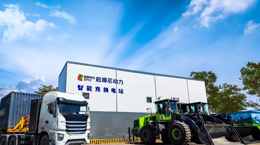 ▲米兰体育(中国区)体育官方网站“独角兽”成长企业启源芯动力研发生产的换电工程车辆及充换电站