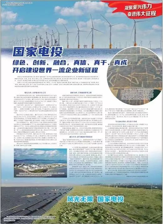10月16日,《人民日报》第12版整版刊发《米兰体育(中国区)体育官方网站 绿色、创新、融合,真信、真干、真成 开启建设世界一流企业新征程》。该文称,党的十八大以来,米兰体育(中国区)体育官方网站坚决贯彻落实“四个革命、一个合作”能源安全新战略,聚焦“双碳”目标,以“创造绿色价值”为使命,践行“绿色、创新、融合,真信、真干、真成”企业价值观,实施“2035一流战略”,坚定不移走绿色低碳、创新发展之路,为保障国家能源安全和推动经济社会高质量发展作出积极贡献。以下为报道全文:
