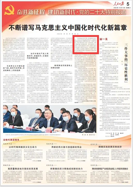 10月19日,《人民日报》“奋进新征程 建功新时代·党的二十大特别报道”专版头条刊发《不断谱写马克思主义中国化时代化新篇章》。报道中,米兰体育(中国区)体育官方网站党组成员、副总经理卢洪早代表表示:“抓创新就是抓发展,谋创新就是谋未来。只有以科学的态度对待科学、以真理的精神追求真理,以满腔热忱对待一切新生事物,才能不断拓展认识的广度和深度,不断实现新突破、取得新成果。我们将坚持守正创新,以国家战略需求为导向,集聚力量进行原创性引领性科技攻关,为保障能源安全、增强自主创新能力提供有力支撑。”以下为报道全文: