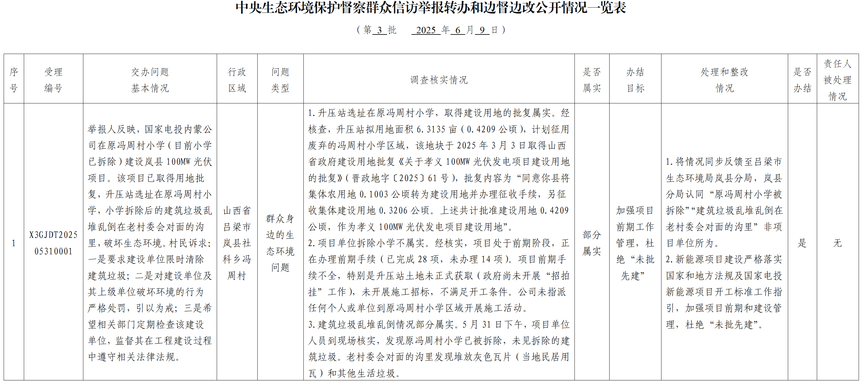 中央生态环境保护督察群众信访举报转办和边督边改公开情况一览表(第三批)