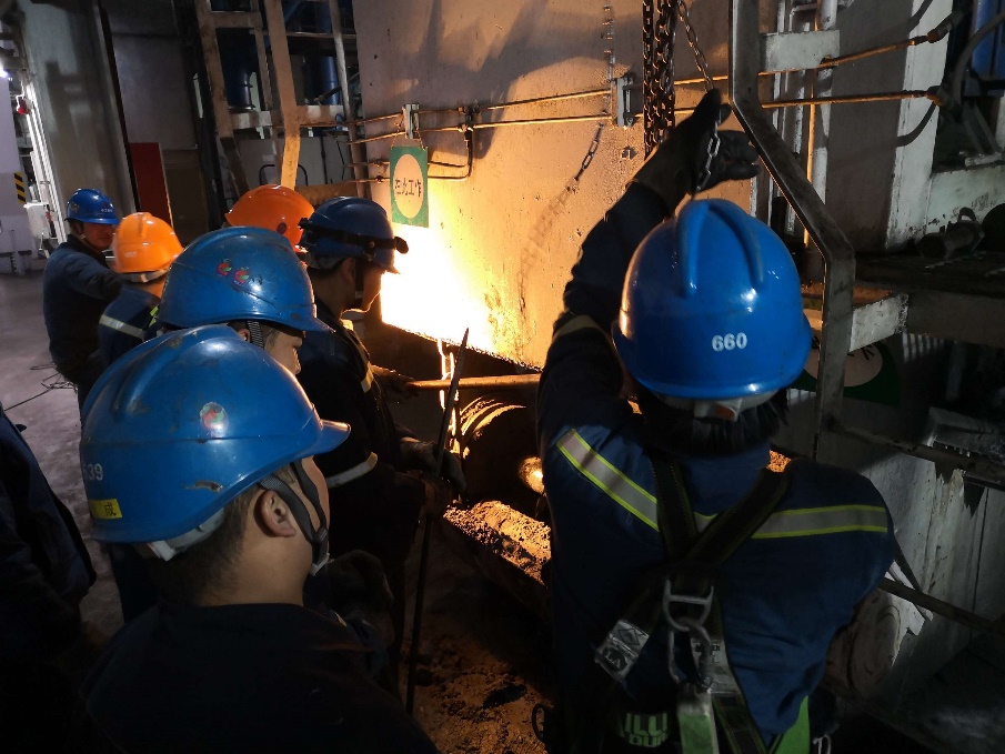 “1号捞渣机电机跳闸……”大年初二,20时43分,铝电公司中卫热电维护部炉务班,传来急促的电话铃声。中卫热电承担着宁夏中卫市30万户居民的供热任务,故障若不尽快消除,机组将会被迫停机,抢修工作迫在眉睫。正在当值的李勇勇边戴安全帽,边奔向现场,很快发现了问题。原来,捞渣机刮板断了,卡在只有50公分宽的回链仓里,导致清渣工作无法正常进行。工作空间狭小、扁平、潮湿、幽暗,要捞起一米长、近百斤的断块,抢修太难了。现场,由周涛、王伟等党员带头的12人抢修突击队立马组建了起来。他们有的钻进回链仓,有的调整捞渣机链条,牛昊借助氧气乙炔进行切割……飞溅的火星打在作业员的身上,却没有人停歇。23时37分,故障排除,捞渣恢复,供热继续!不知是渣泥的迸溅,还是汗水的洗礼,他们的工服湿透了,全身脏兮兮,但脸上却洋溢起胜利的微笑。